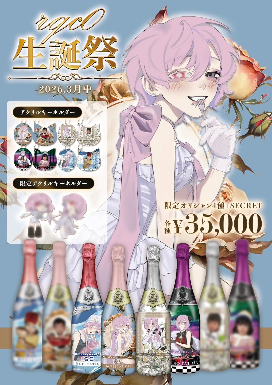 出勤中のキャストに遠隔で生誕のオリジナルシャンパンを飲ませることができます。